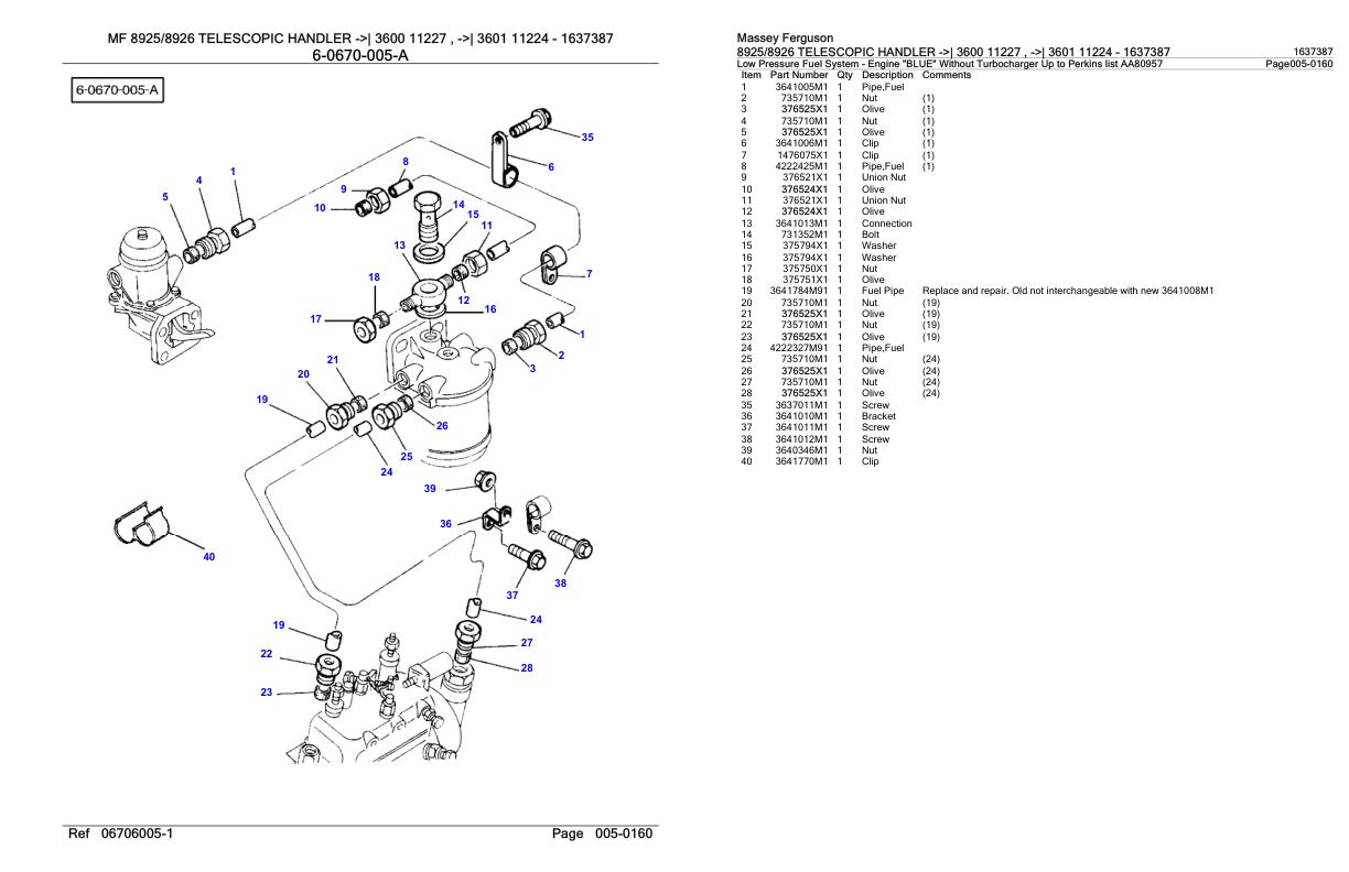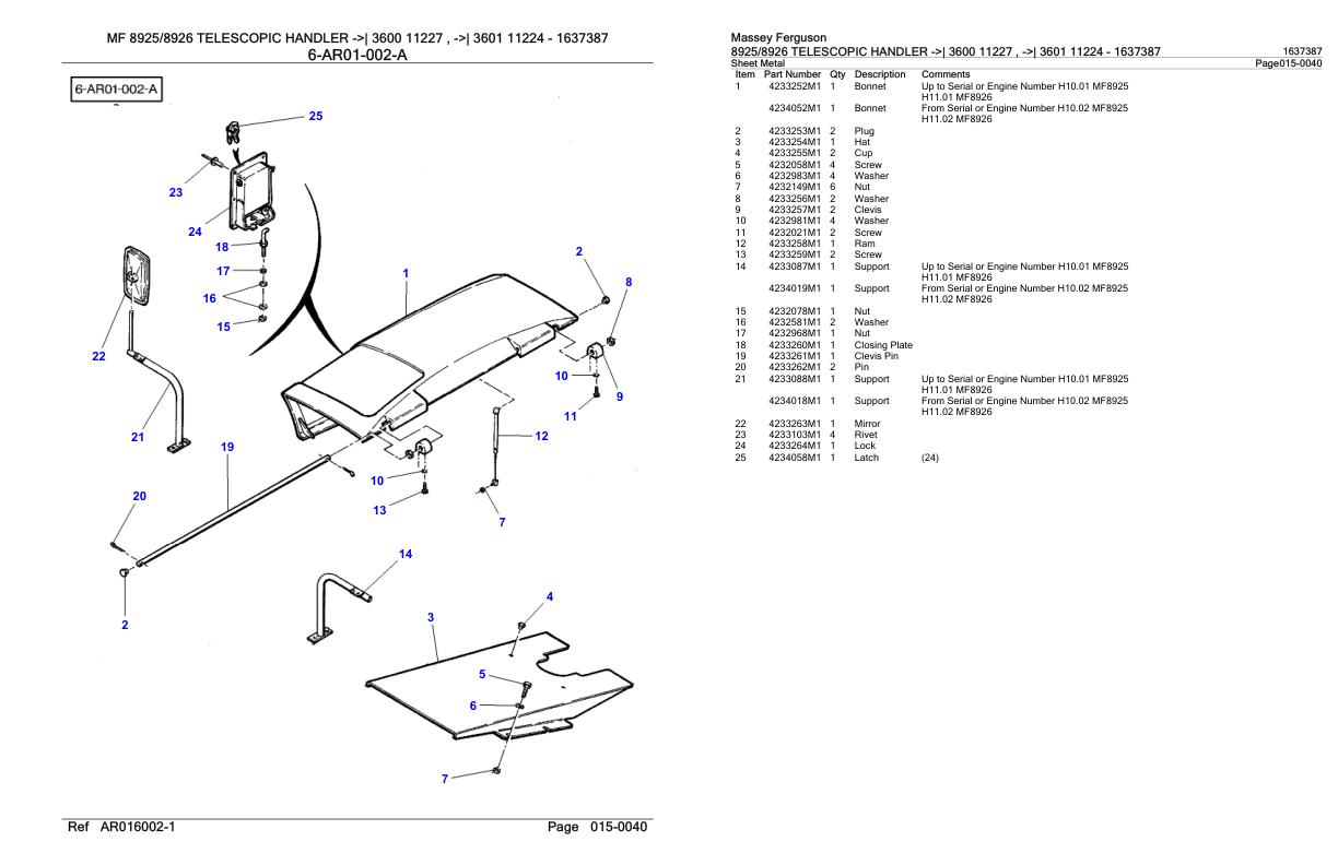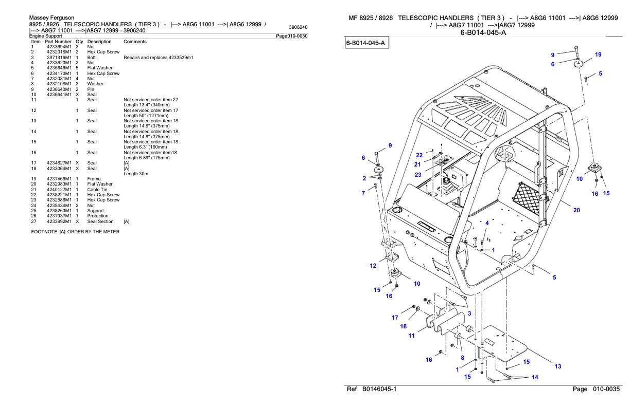 Massey Ferguson 8925 8926 Telescopic Handler Parts Catalog 1637387
