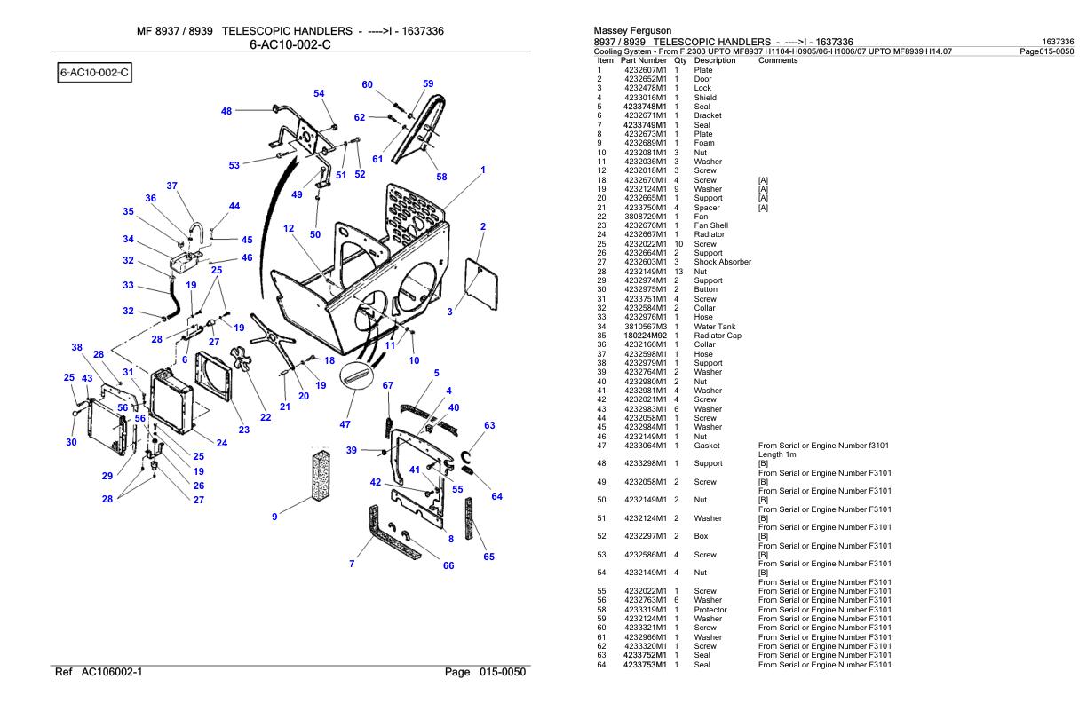 Massey Ferguson 8937 8939 Telescopic Handler Parts Catalog 1637423