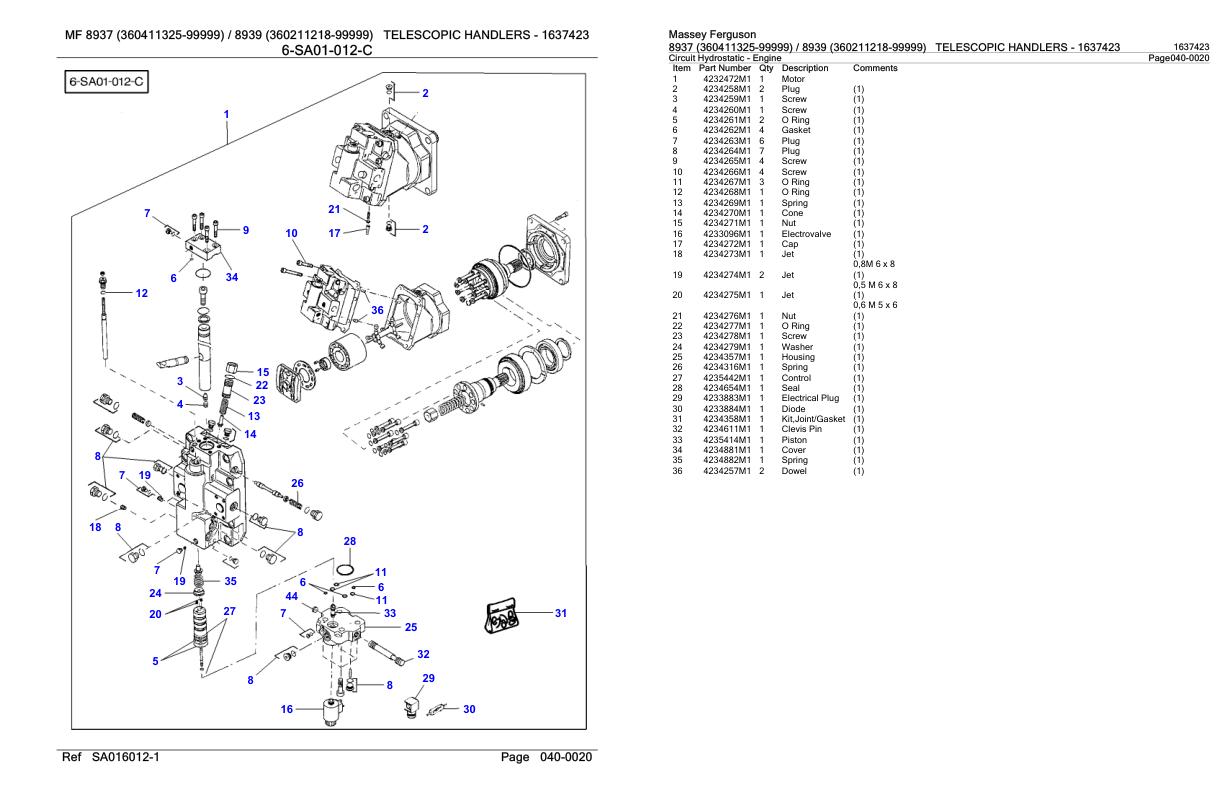 Massey Ferguson 8937 8939 Telescopic Handler Parts Catalog 1637336