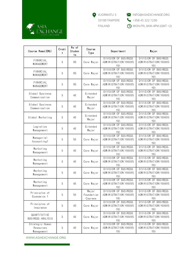 Hanyang University ERICA English Course List For 2019 Fallundergrad