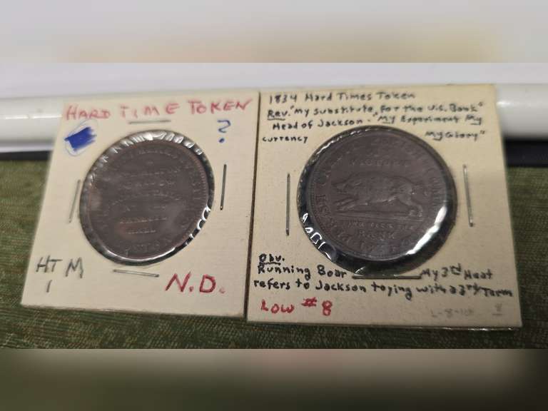 (2) c1835 UNITED STATES HARD TIMES PERIOD TOKENS ANDREW JACKSON