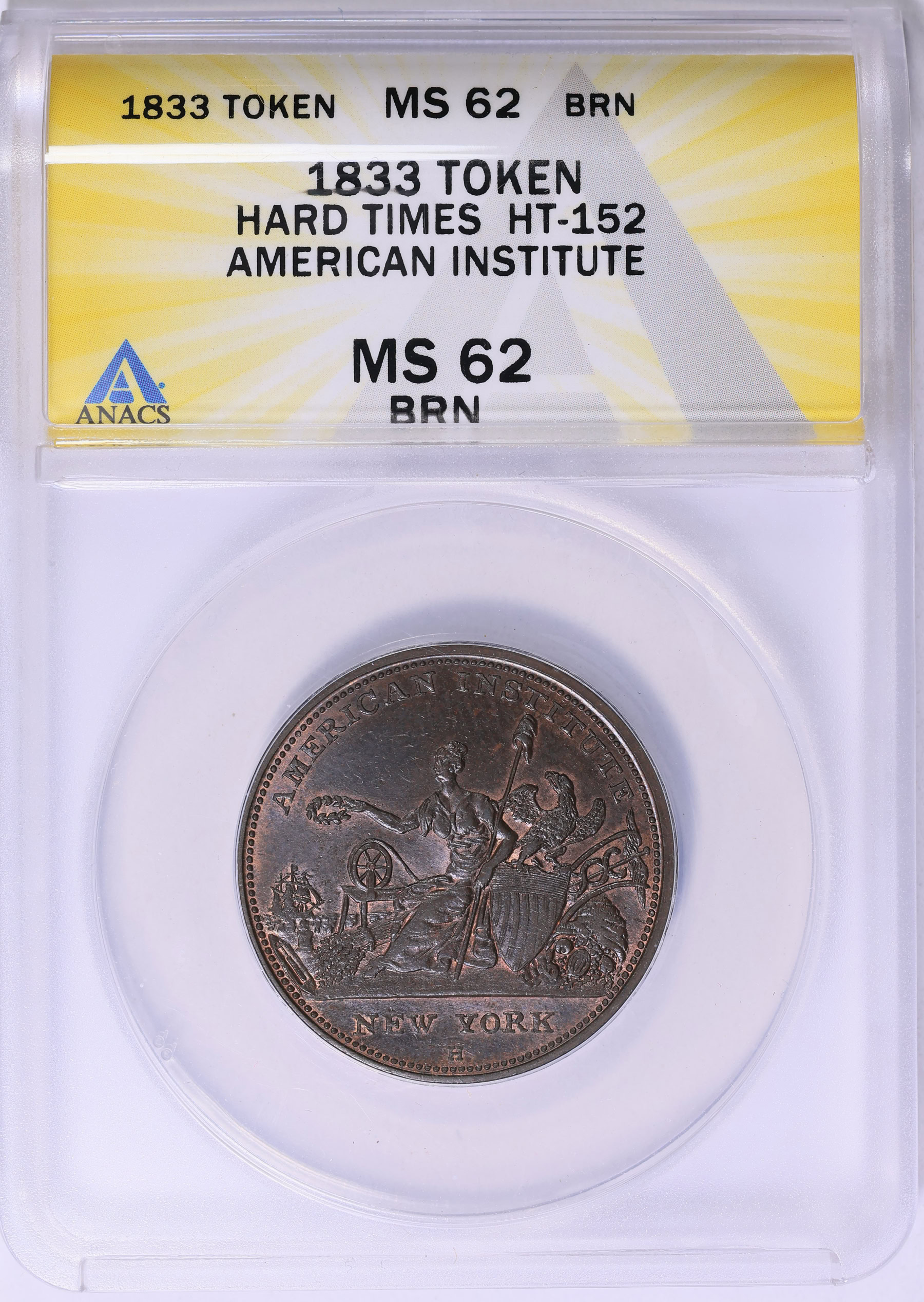 1833 American Institute Hard Times Token HT152 ANACS MS62 BN (Item