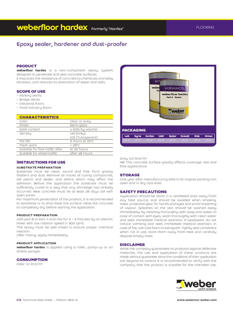TDS Weberfloor Hardex PDF Concrete Epoxy