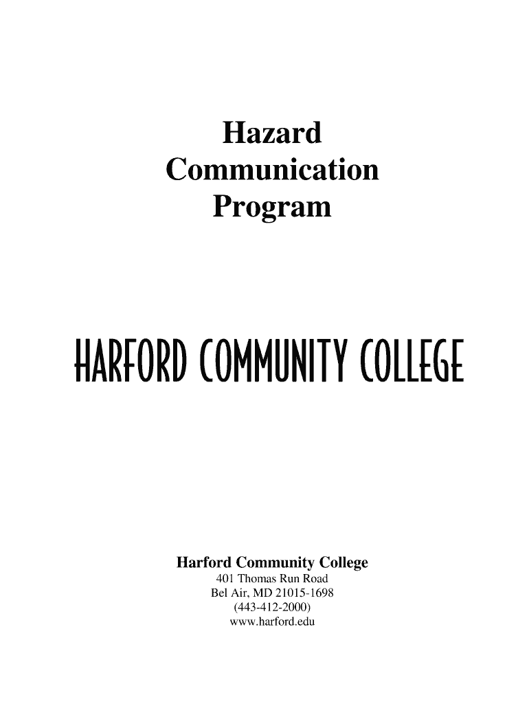 HARFORD COMMUNITY COLLEGE CHEMISTRY A.S. DEGREE