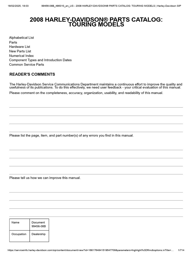 Parts Catalog 2008 HarleyDavidson Touring Models 9945608