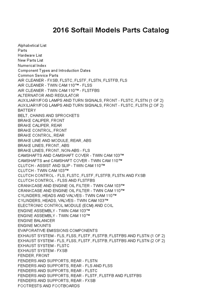 HarleyDavidson 2016 Softail Parts Catalog PDF PDF Anti Lock