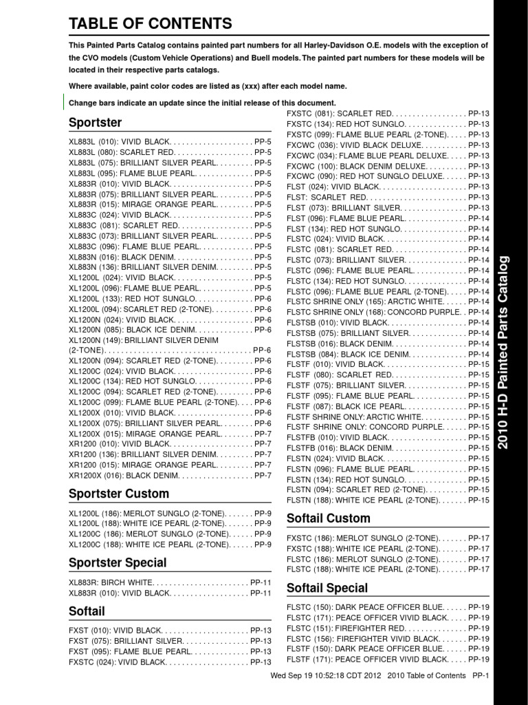 2010 Harley Painted Parts Catalog PDF Color Red