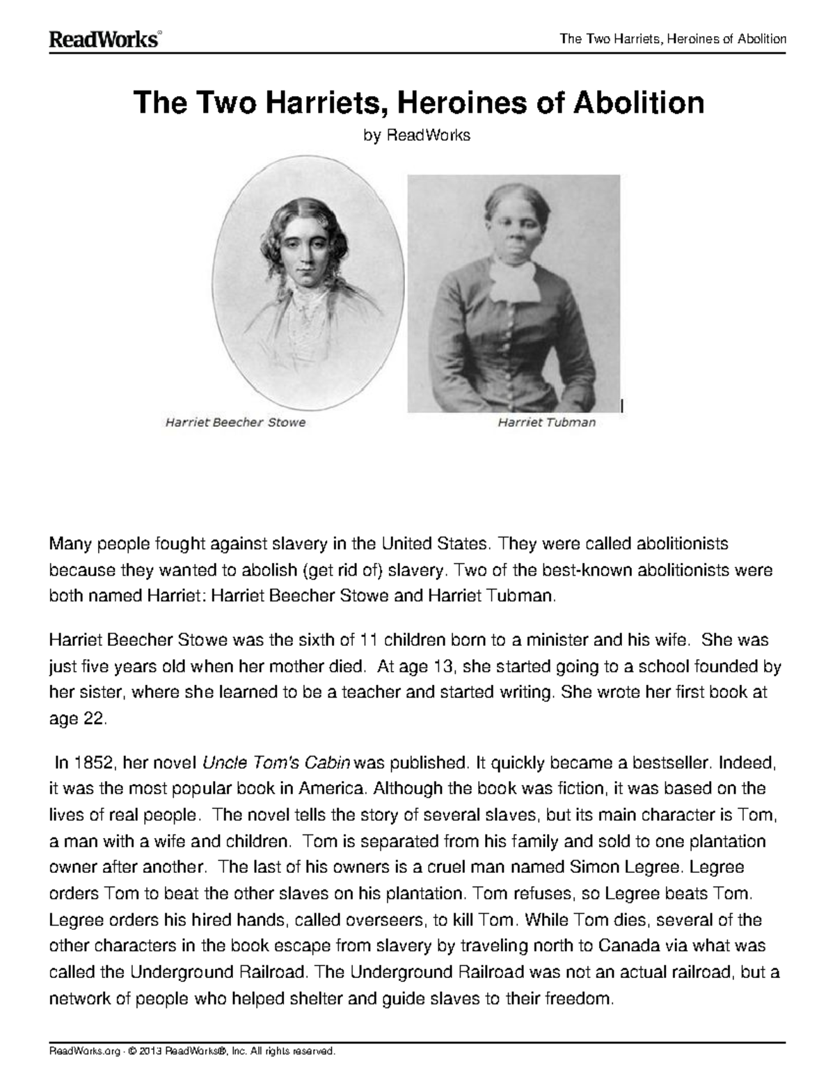 Appr Unit 5 Reading Lesson 17 The Two Harriets, Heroines of Abolition