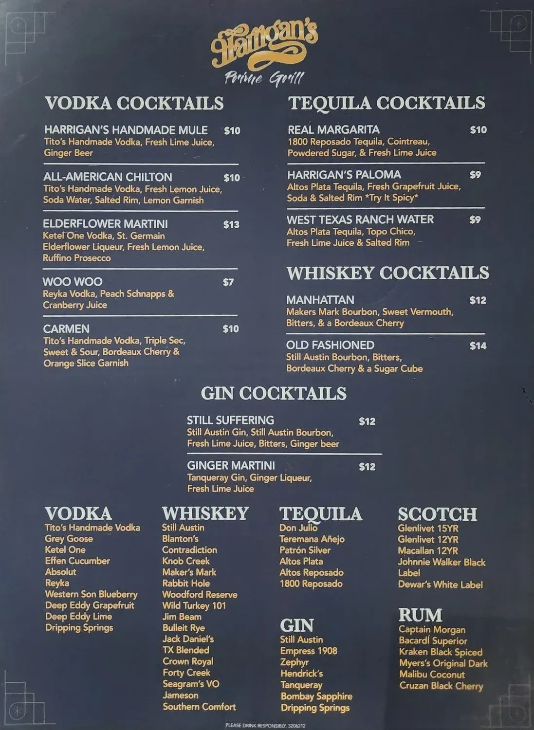Menu at Harrigan's Calypso Bay pub & bar, Jacobs Well
