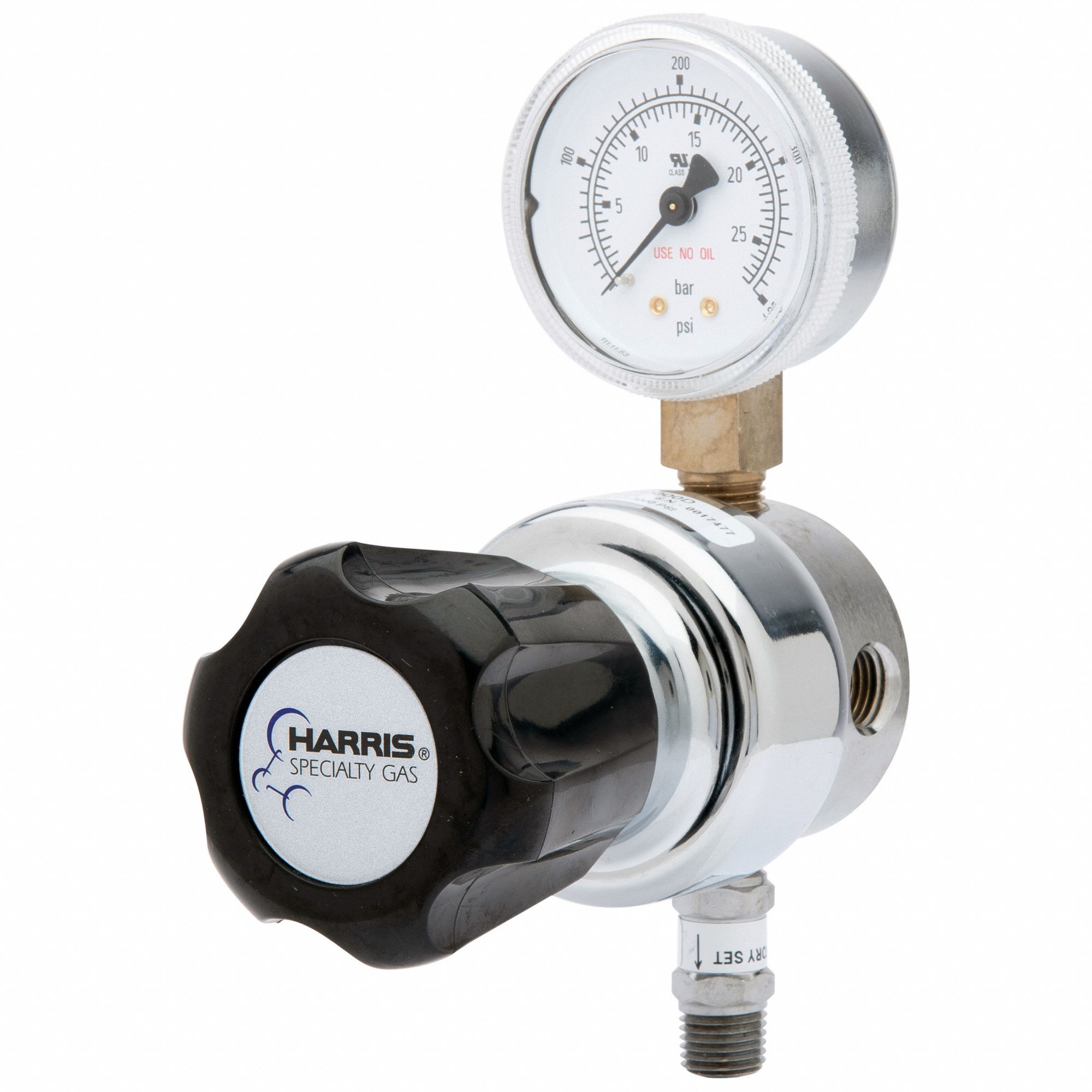 HARRIS INDUSTRIES GAS REGULATOR, SINGLE STAGE, CGA 580 INLET, ¼ IN NPT