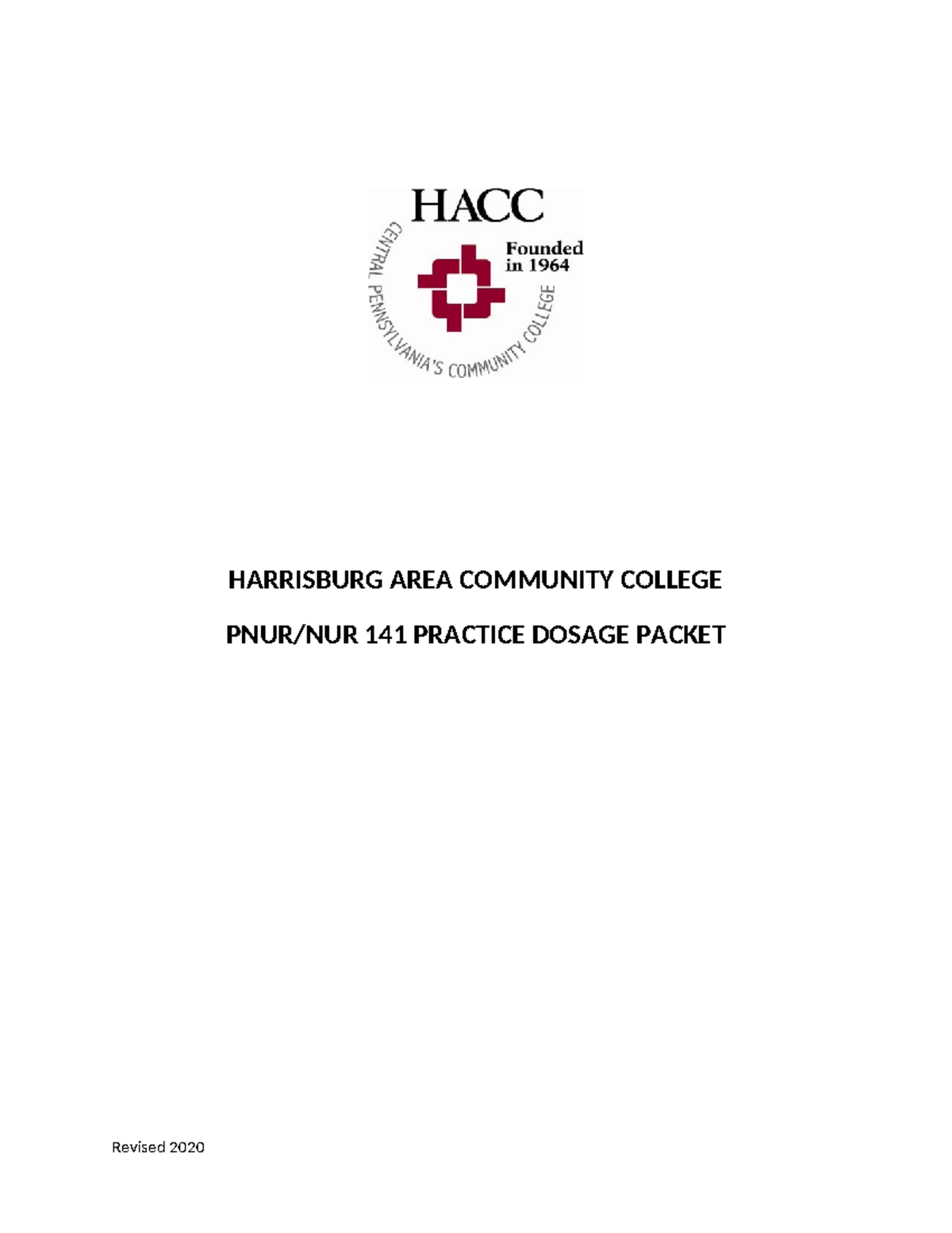 Dosage Calc Practice Packet HARRISBURG AREA COMMUNITY COLLEGE PNUR