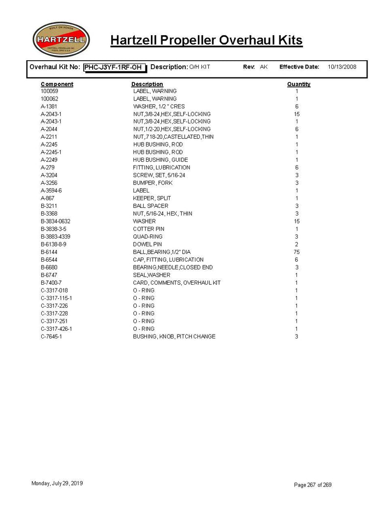 PHCJ3YF1RFOH HARTZELL OVERHAUL KITS Ottosen Propeller