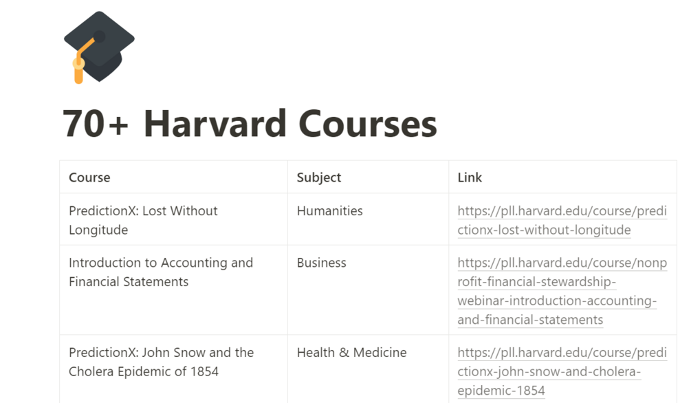 70+ Harvard Courses