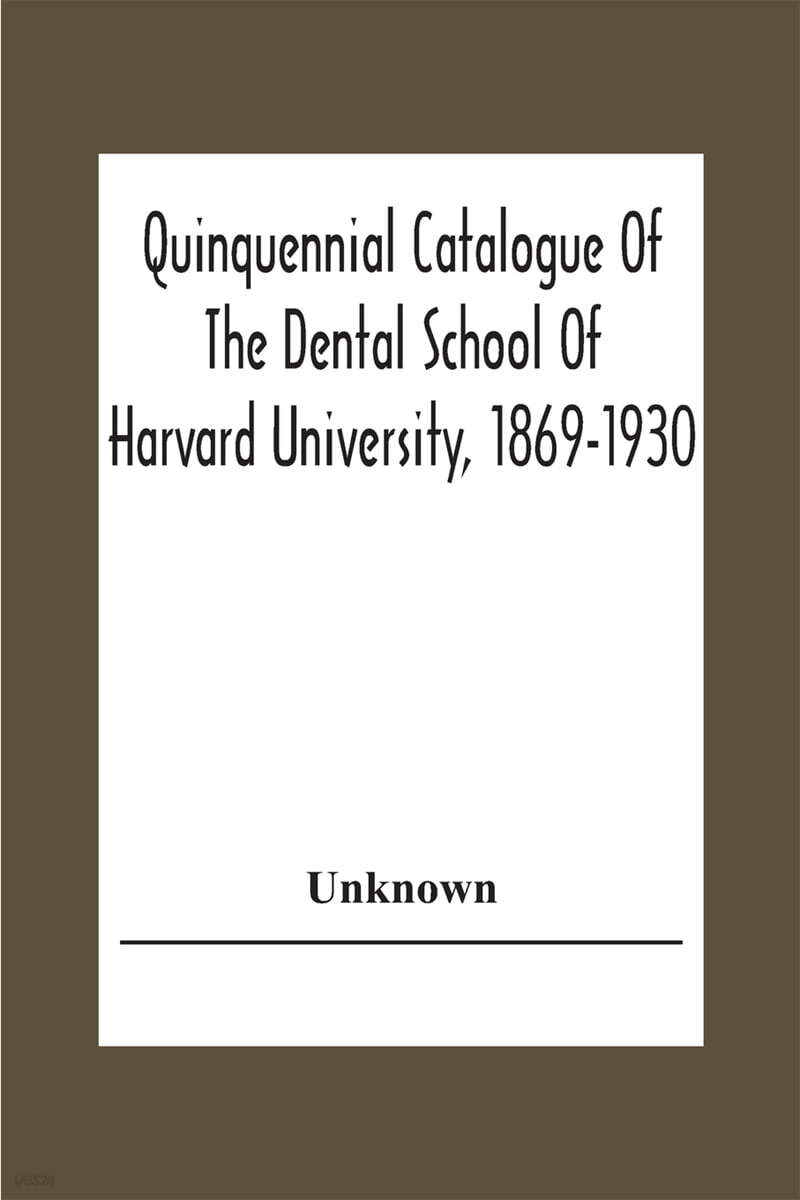 Quinquennial Catalogue Of The Dental School Of Harvard University, 1869