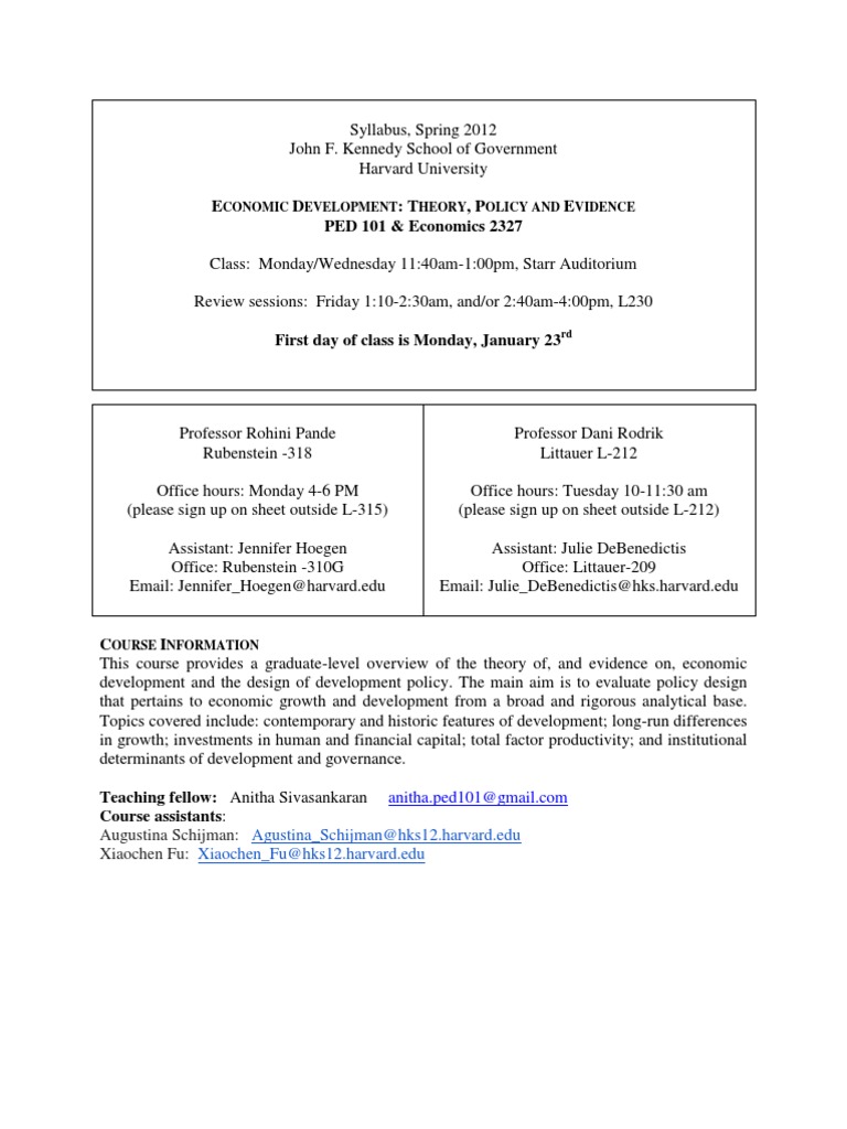 Dani Rodrick's Harvard Kennedy Course On Economic Development PDF