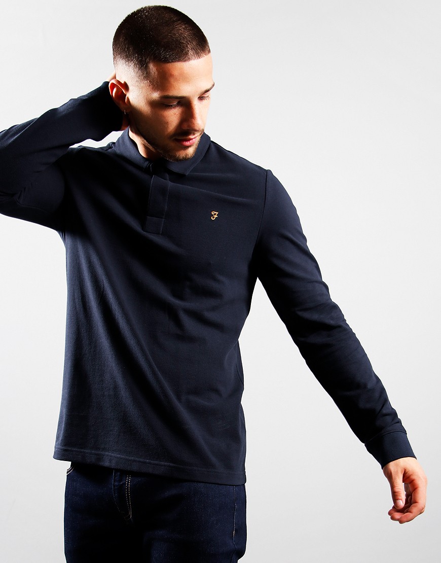 Farah Long Sleeve Haslam Polo Shirt True Navy Terraces Menswear
