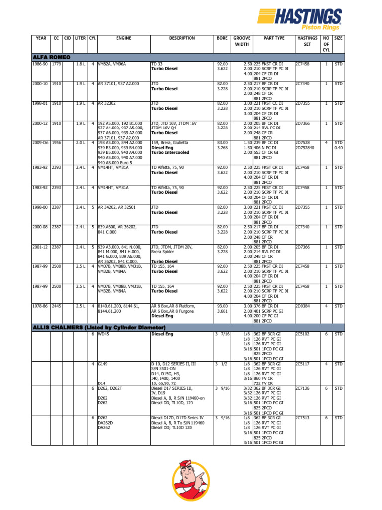 pierscienie hastings dieselcatalog PDF Engines Internal