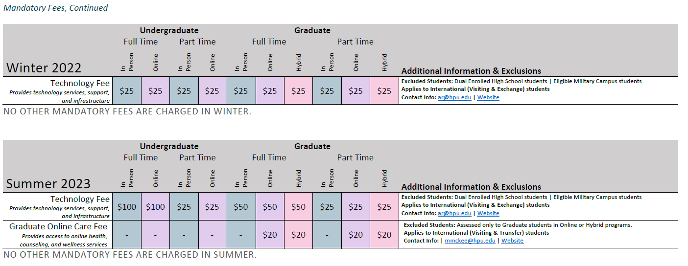 Appendix B Tuition and Fee Schedule Hawai'i Pacific University Catalog