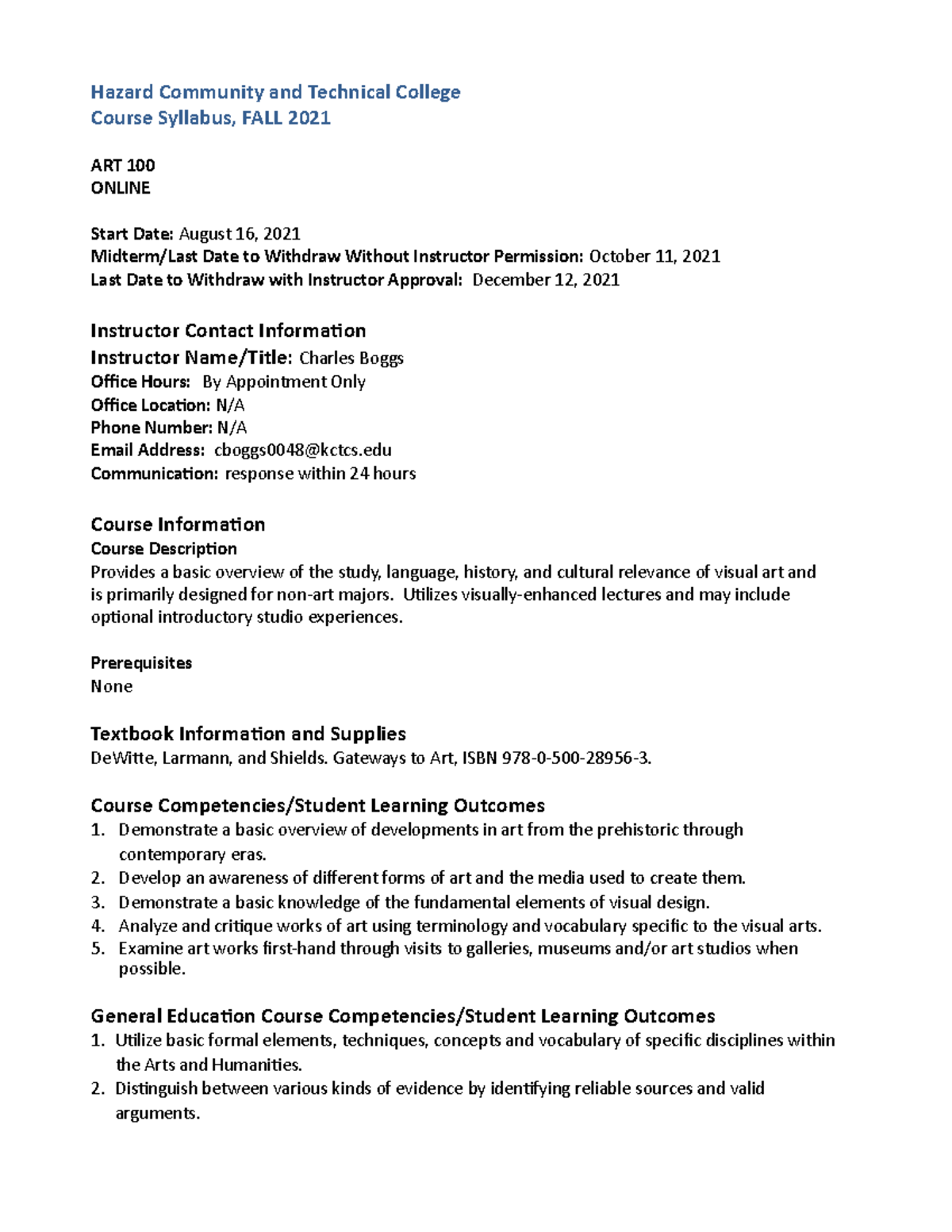 ART 100 45Z1 CBoggs Fall 2021 Hazard Community and Technical College