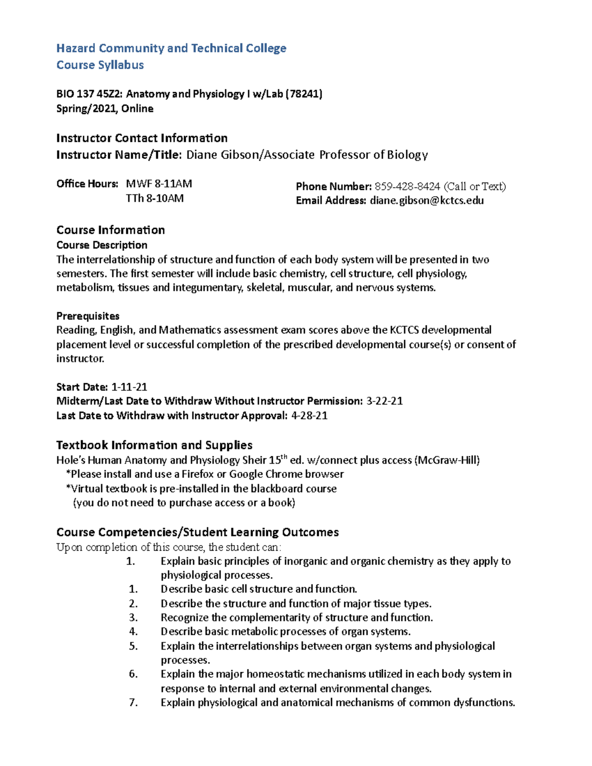 BIO 137 4202 DGibson Spring 2021 Hazard Community and Technical