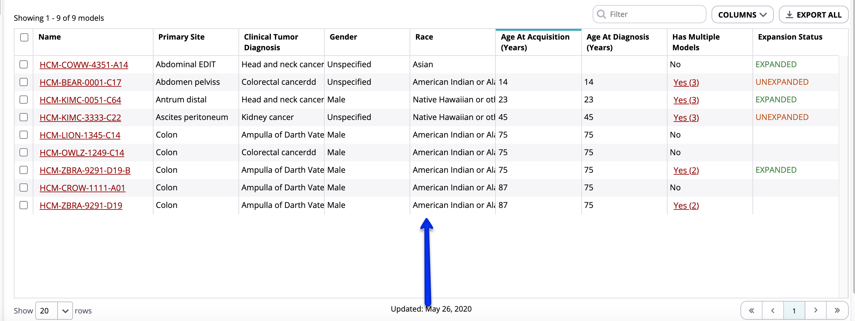Table Export is causing a 400 · Issue 625 · ncihcmicatalog/portal