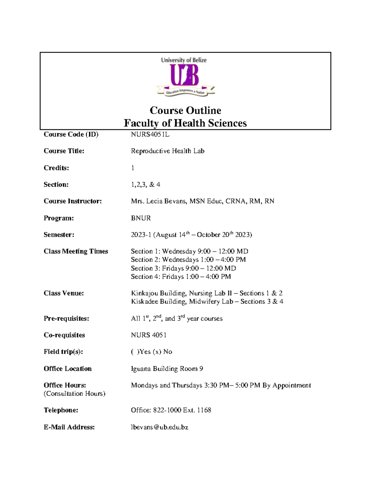 NURS 4051L 2023 Course outline Course Outline Faculty of Health