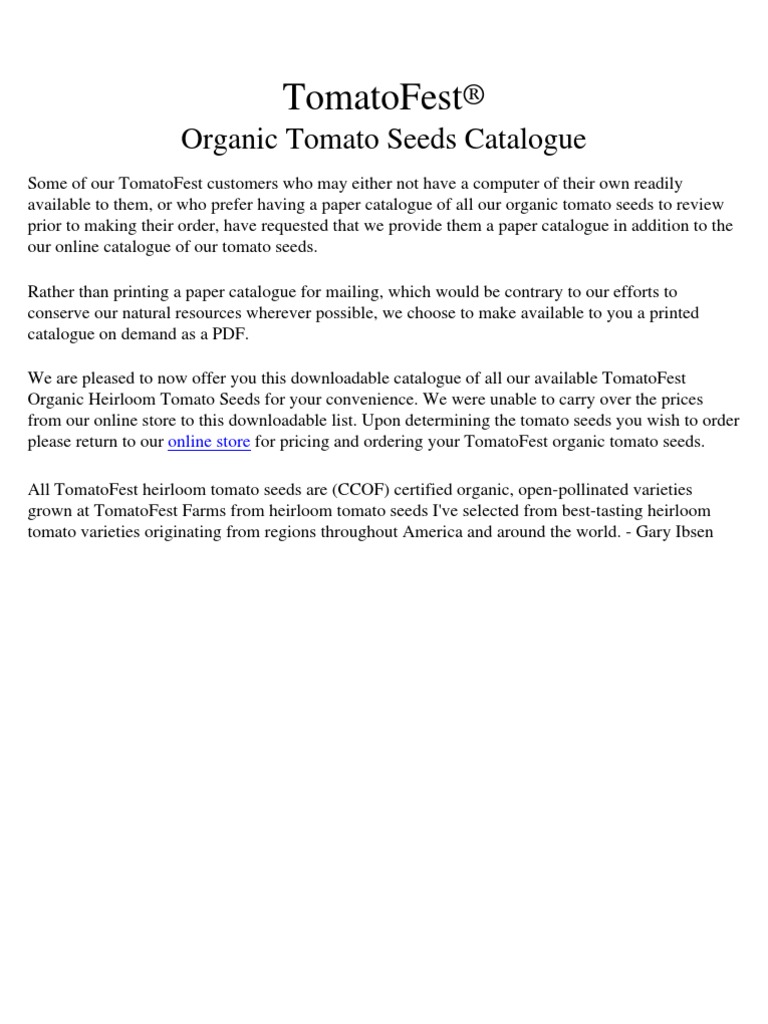 Tomato Fest Organic Heirloom Tomato Seed Catalogue PDF Heirloom