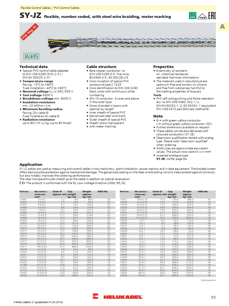 Helukabel Multicore Braided Sy JZ Catalog English 20420 PDF Wire