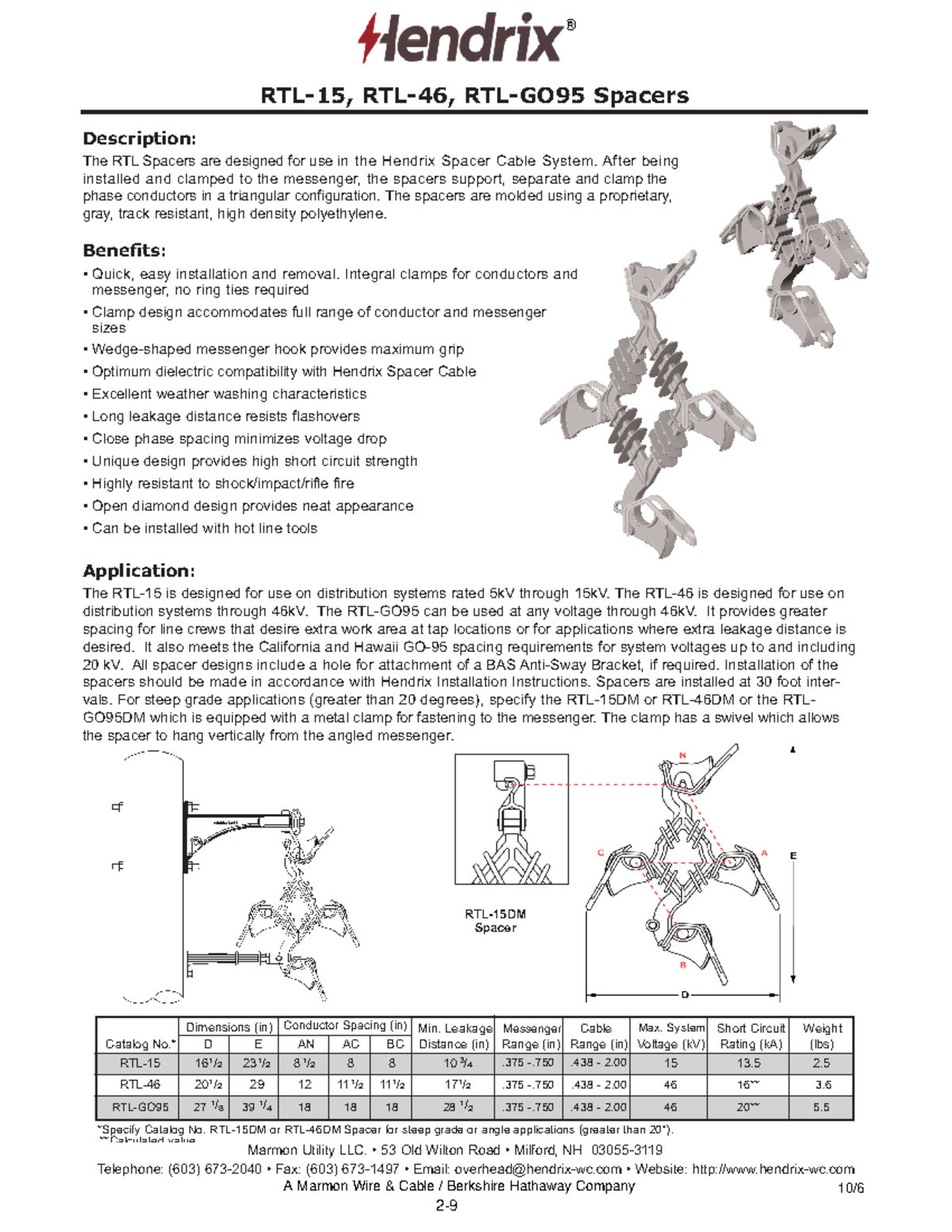 Aerial Catalog 2 9 cable Description The RTL Spacers are designed