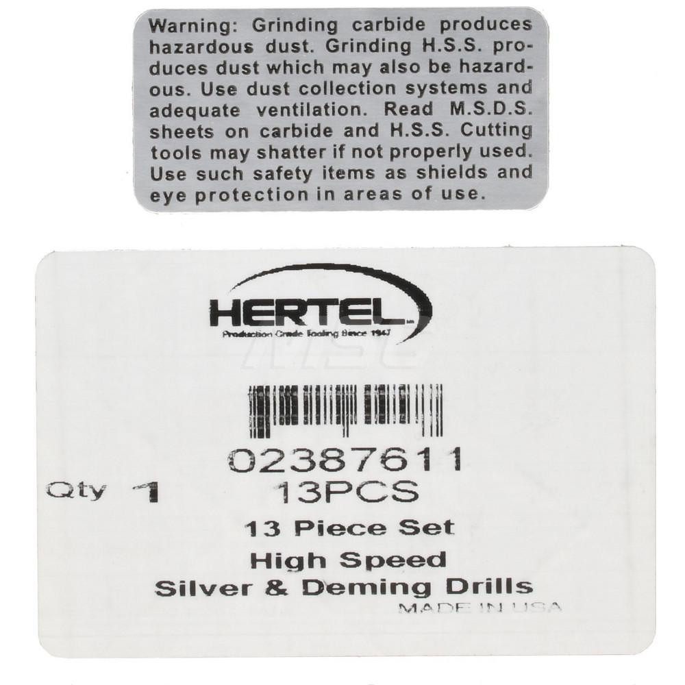 Hertel Jobber Length Drill Set, 21 Pieces, 1/16 3/8" x 64ths, HSS