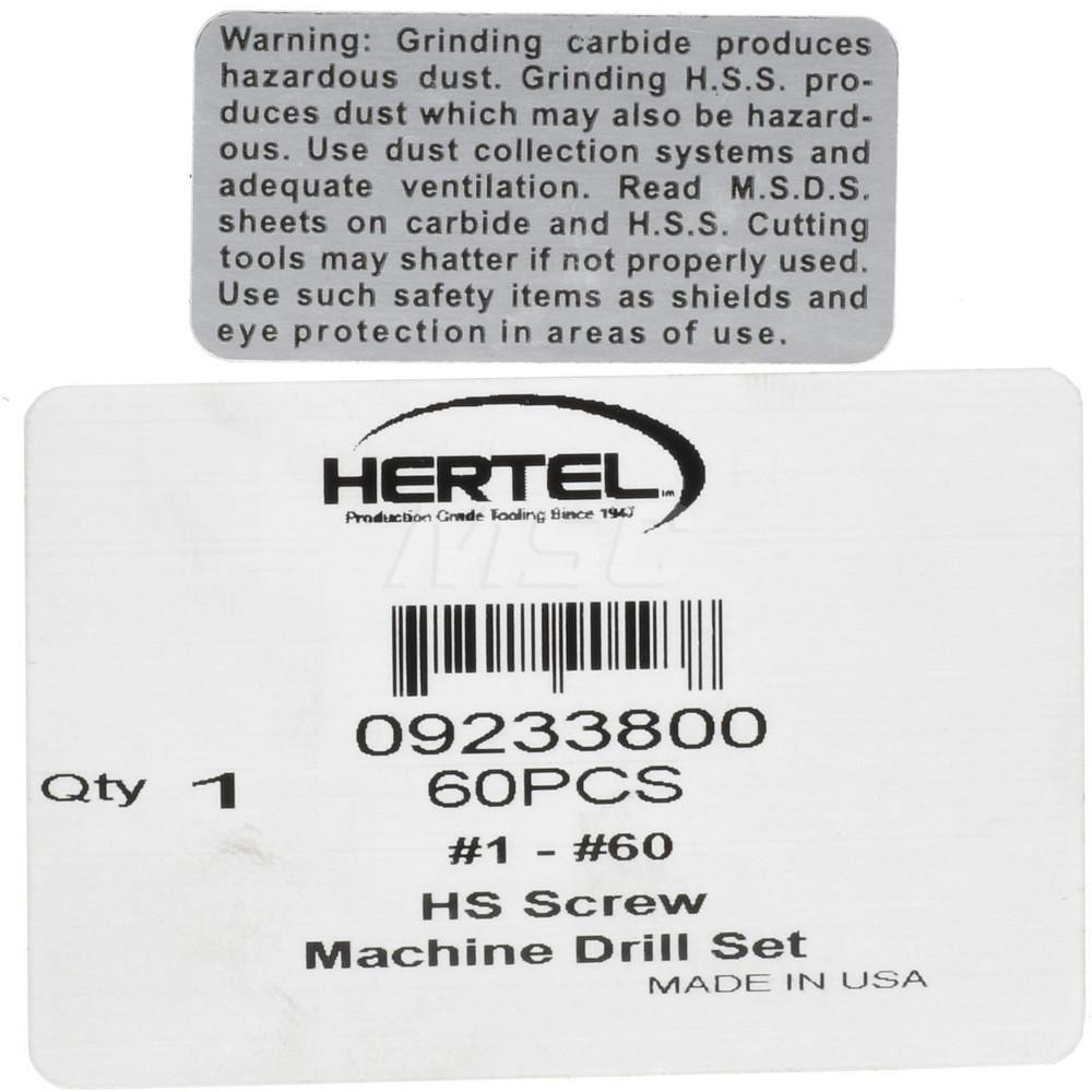 Hertel Drill Bit Set Screw Machine Length Drill Bits, 60 Pc, 135