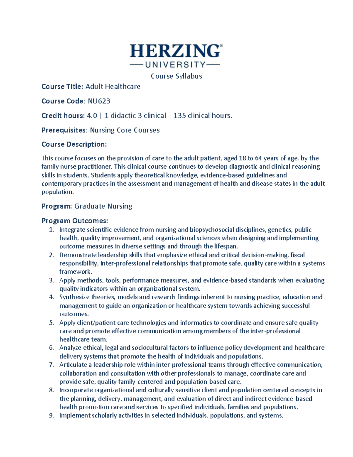 NU 623 Syllabus 12 Course Syllabus Course Title Adult Healthcare