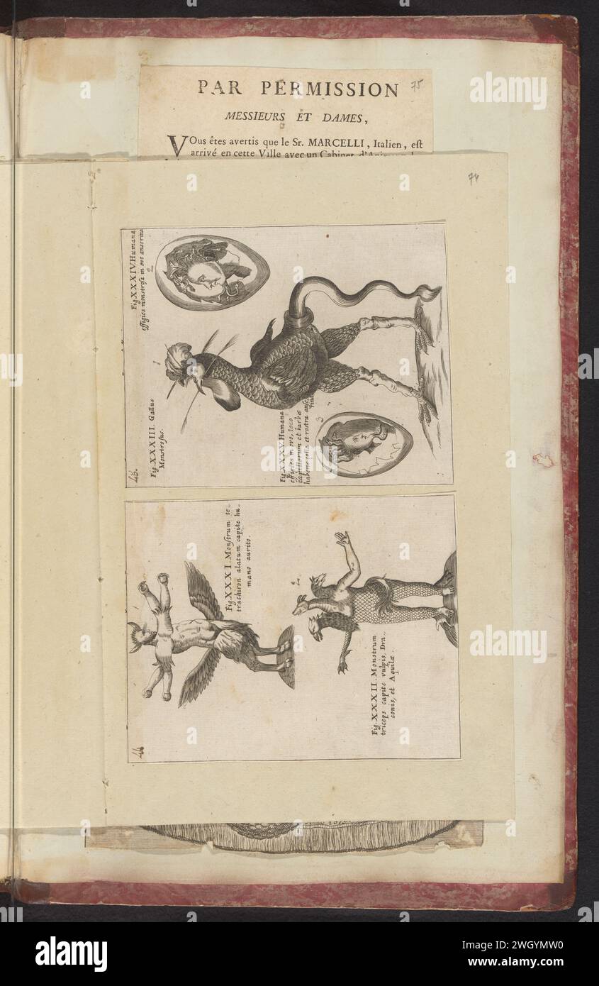 Monstrous animals, Anonymous, 1665 1667 print Two pasted prints with