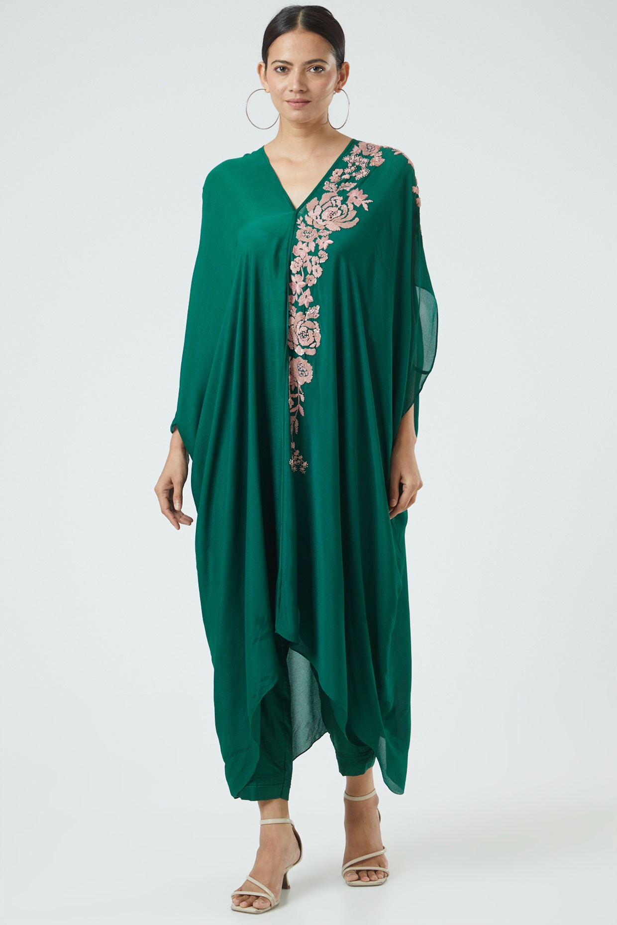 Emerald Green Embroidered Kaftan Set by Half Full Curve at Pernia's Pop