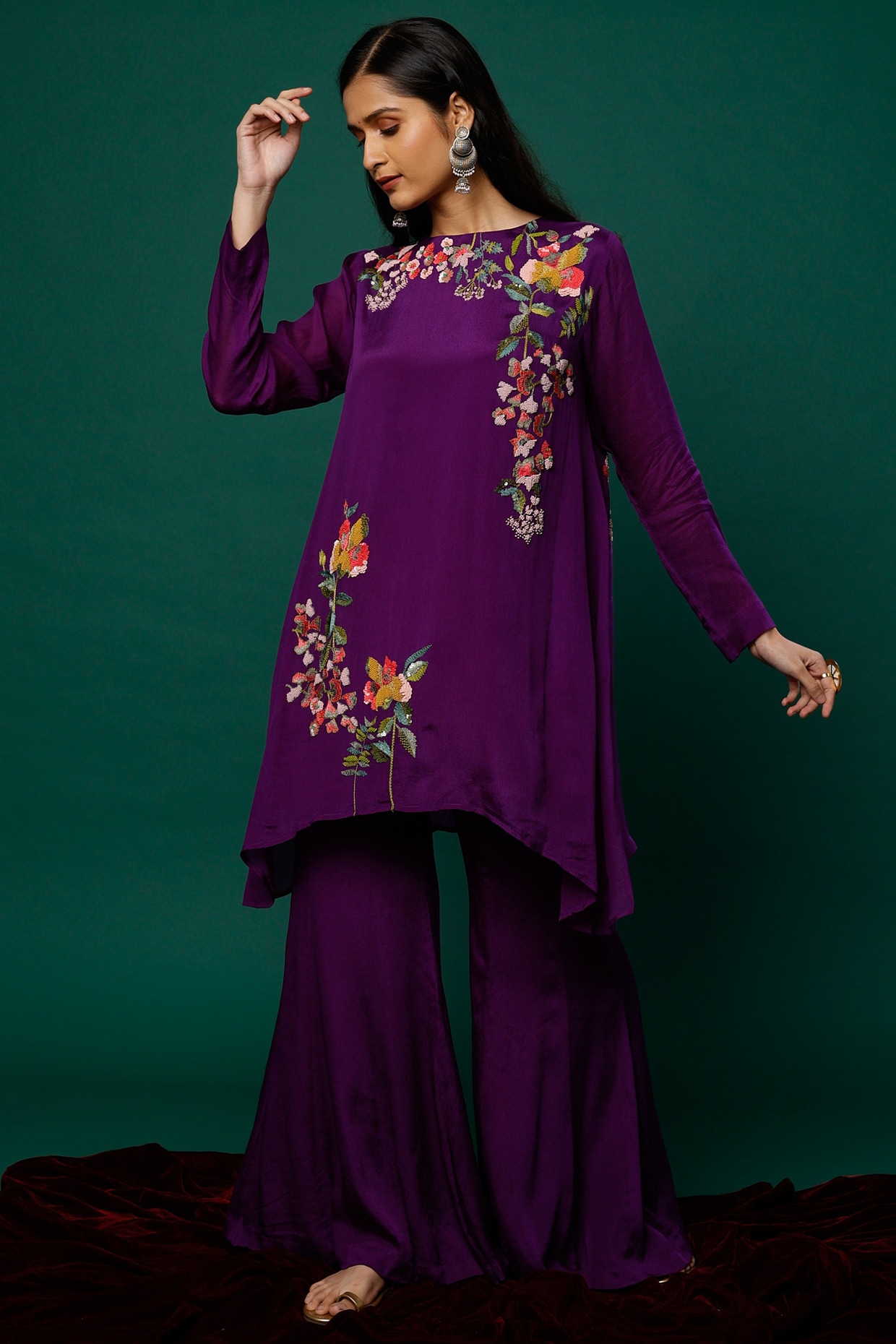 Purple Embroidered Tunic Set by Half Full Curve at Pernia's Pop Up Shop