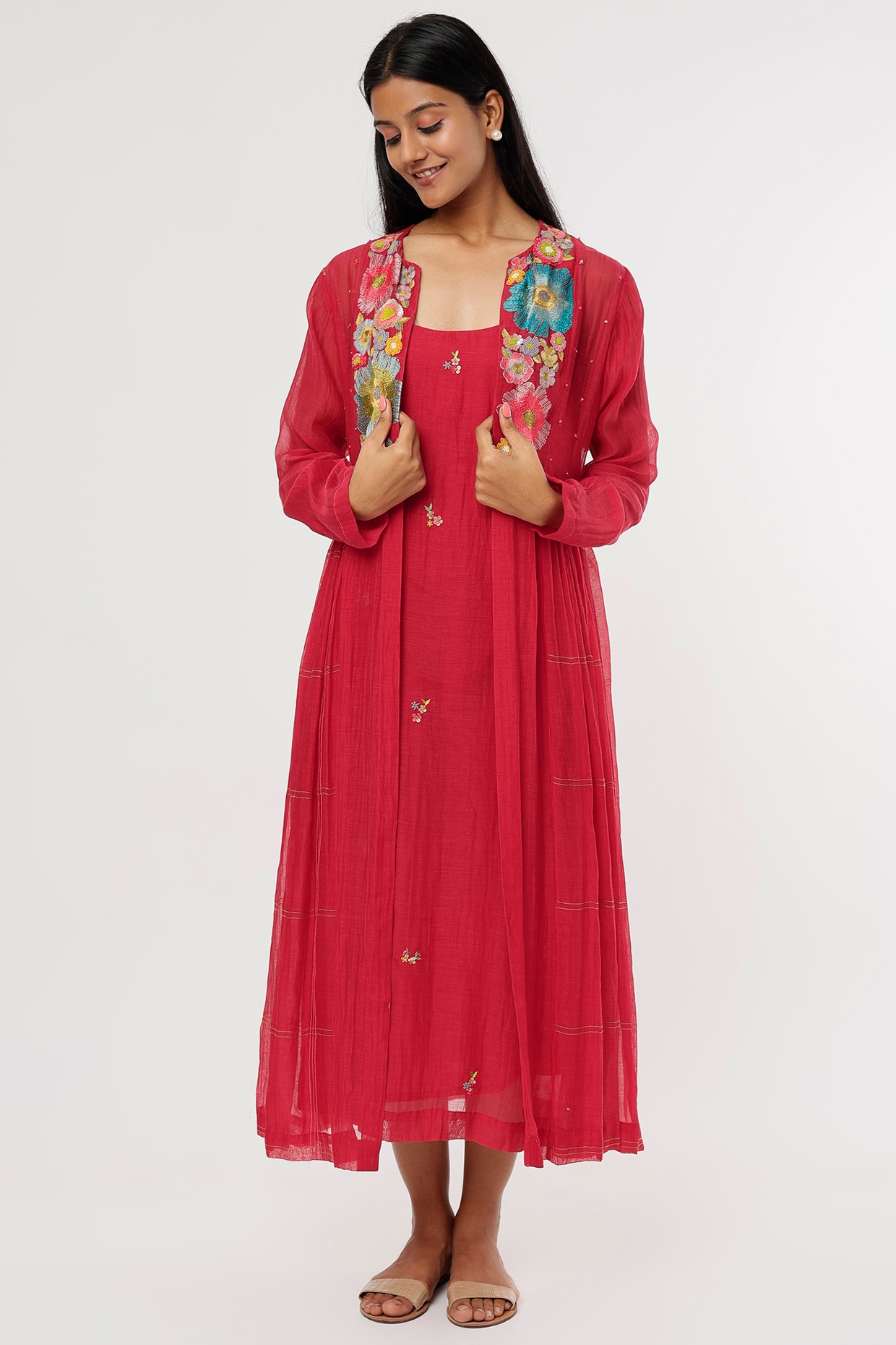 Red Hand Embroidered Jacket Set by Half Full Curve at Pernia's Pop Up