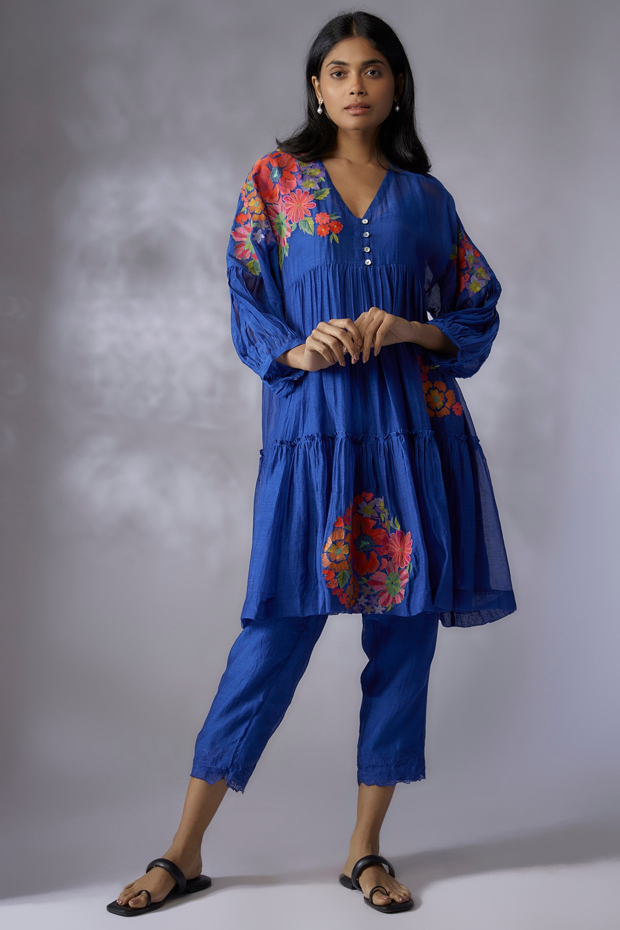 Blue Fine Chanderi CoOrd Set by Half Full Curve at Pernia's Pop Up