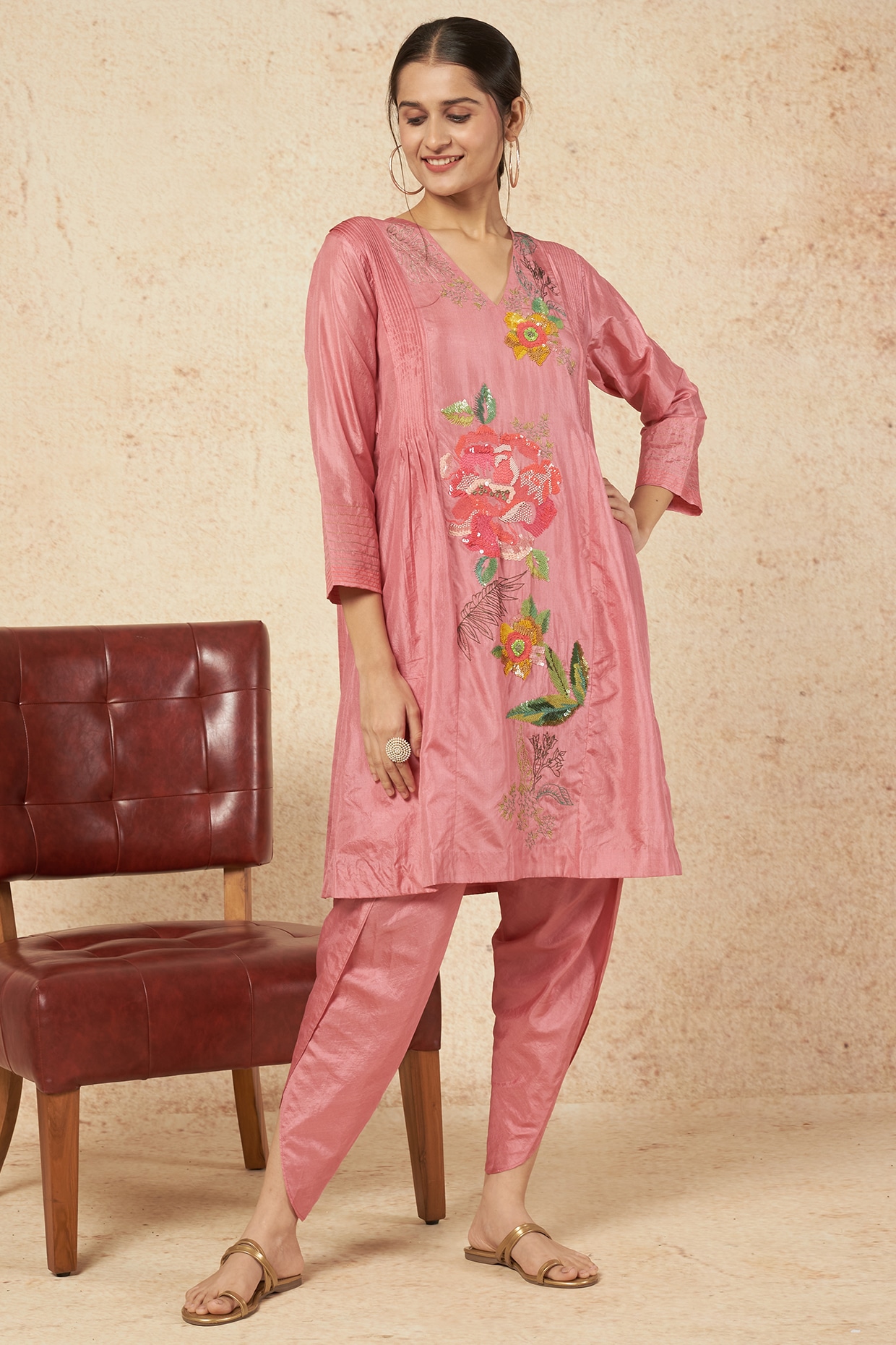 Pink Pure Silk Dhoti Skirt Set by Half Full Curve at Pernia's Pop Up