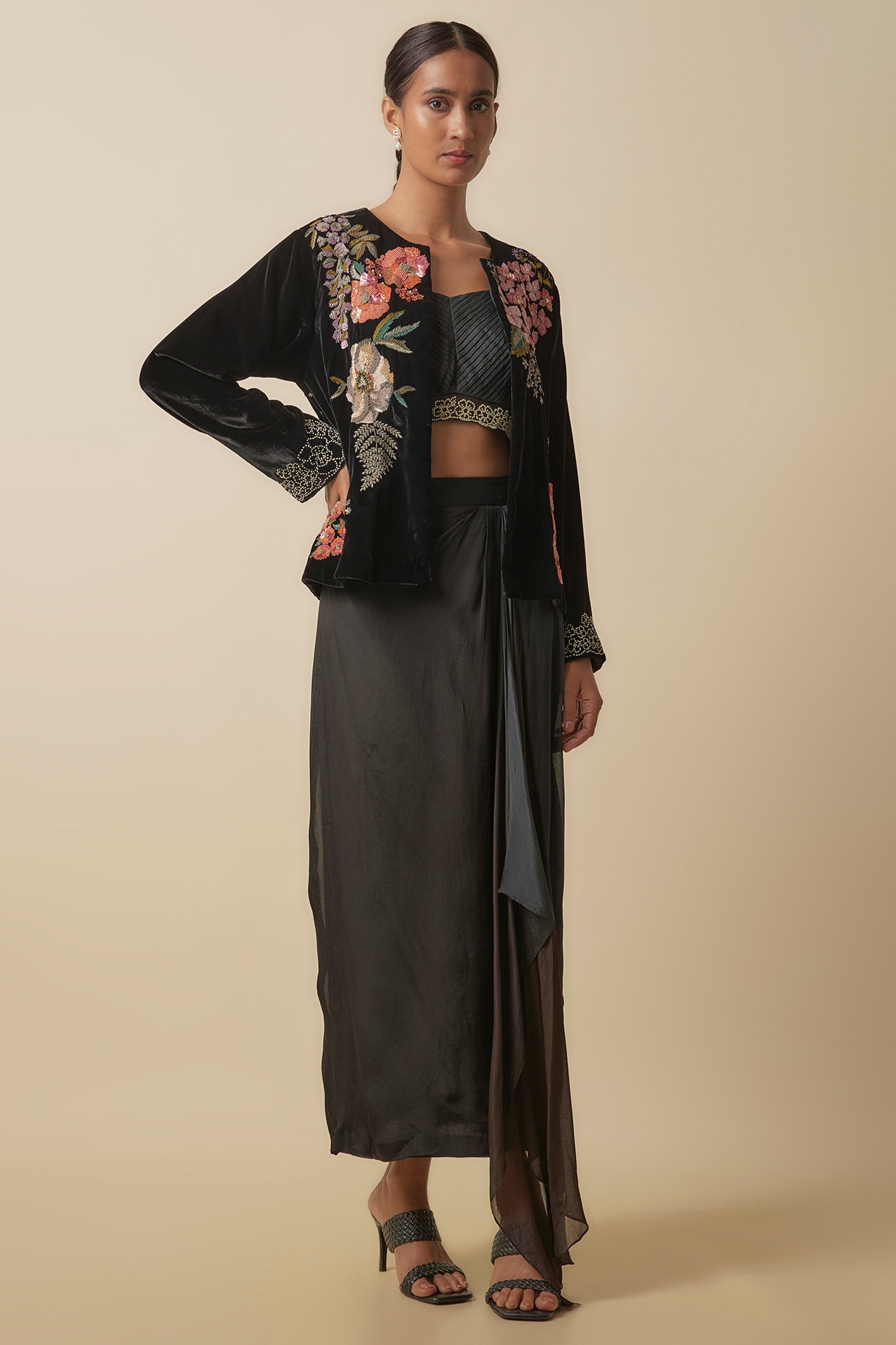 Black Silk Velvet Skirt Set by Half Full Curve at Pernia's Pop Up Shop 2025