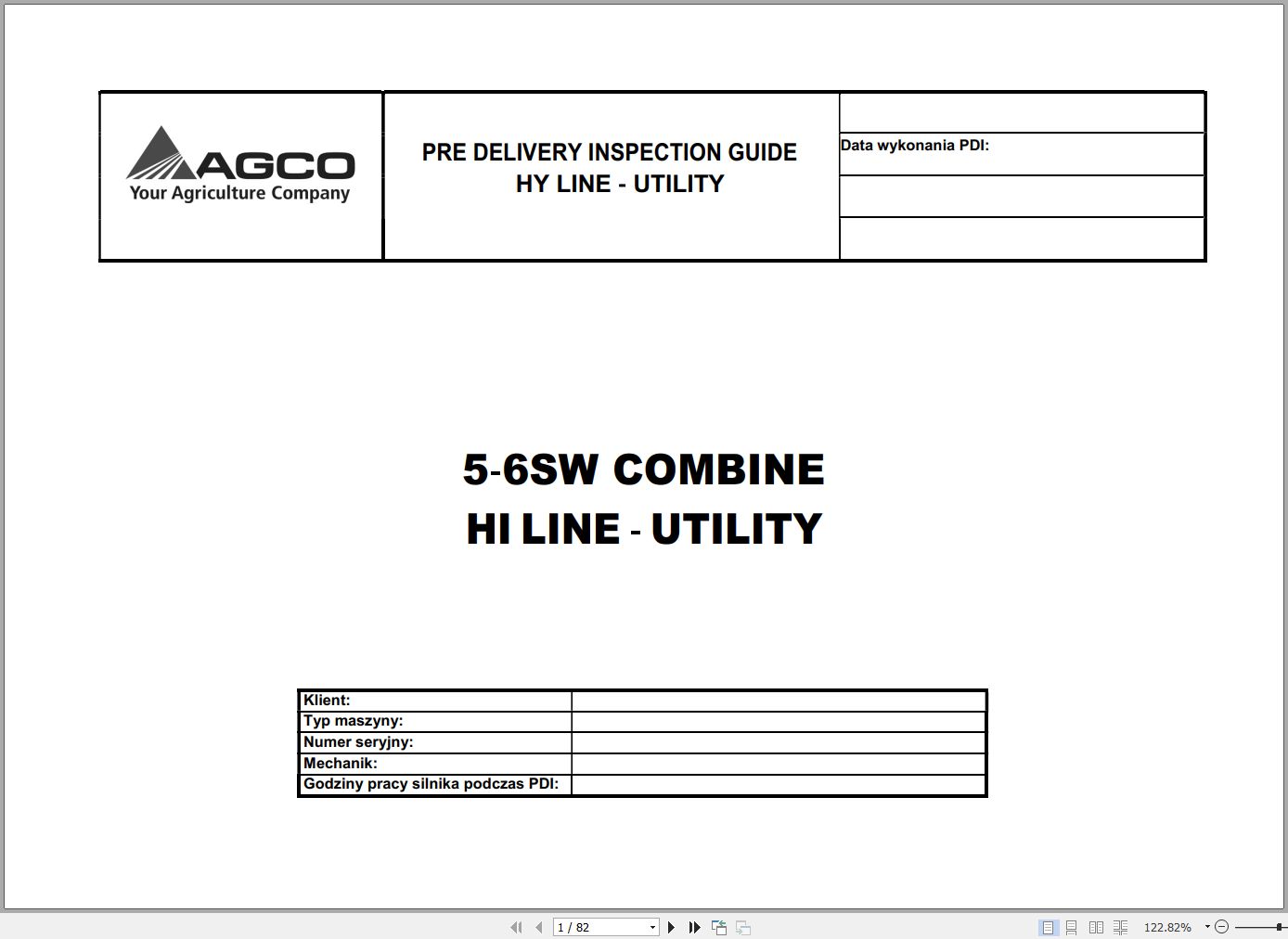 AGCO Combine Harvesters 5SW 6SW Hi Line Utility Pre Delivery Inspection