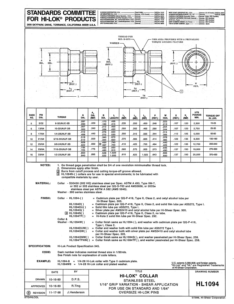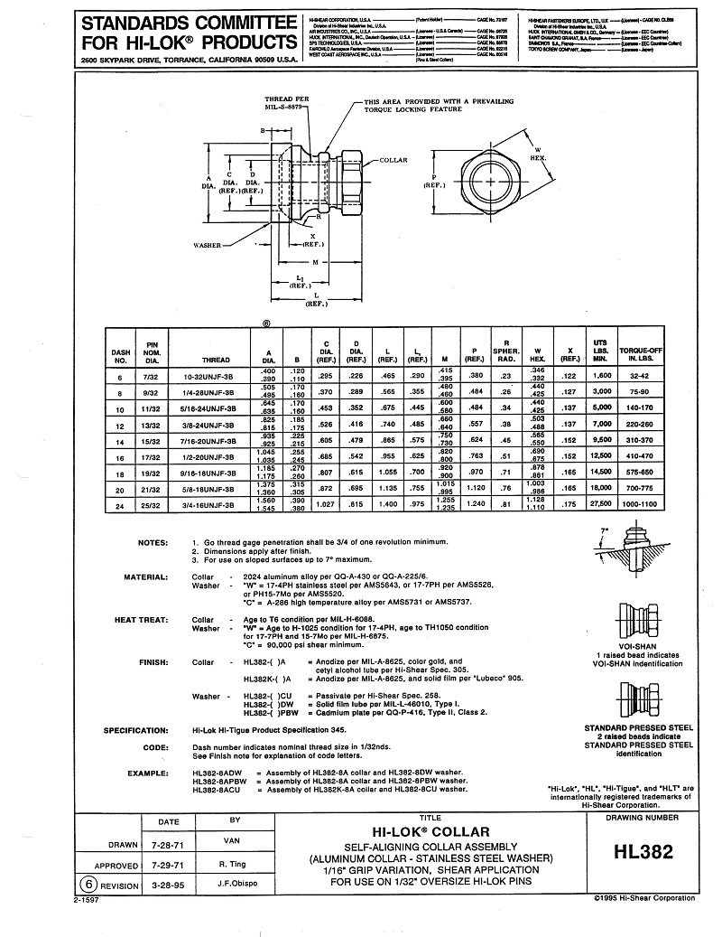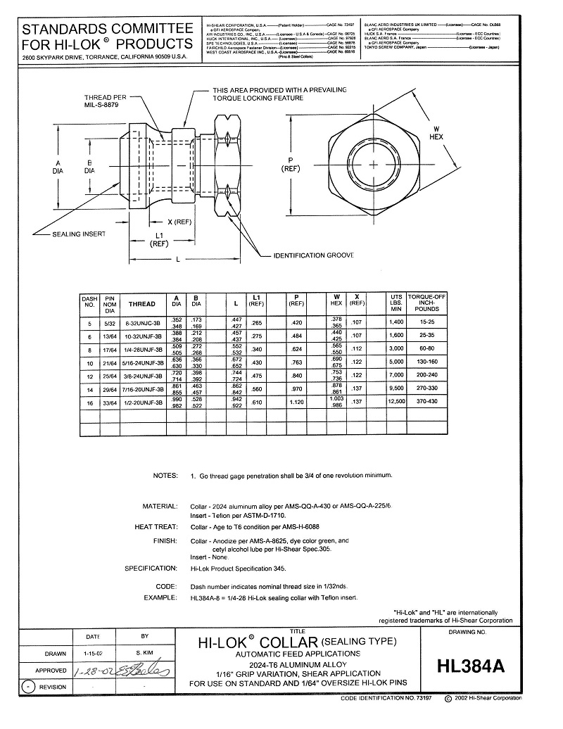 HISHEAR CORP. HILITE™ / HILOK™ / HITIGUE™ Nuts & Collars SKU HISHR