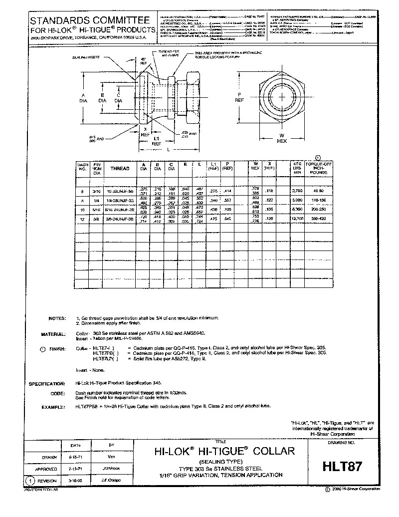HiLok / HiTigue Fasteners HLT87 HiTigue Collar Tension Application