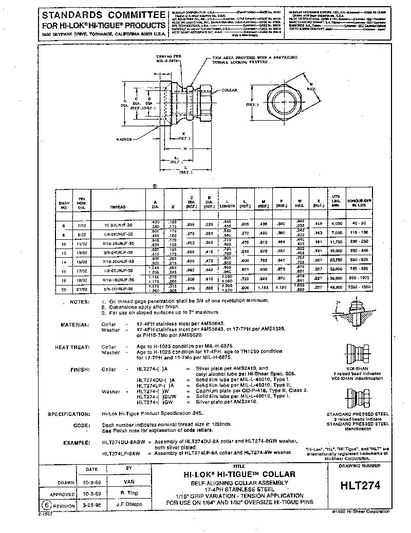 HiLok / HiTigue Fasteners HLT274 HiTigue Collar Tension Application