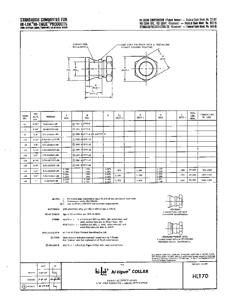 HiLok / HiTigue Fasteners HLT70 HiTigue Collar Shear Application
