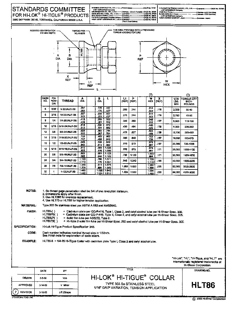 HiLok / HiTigue Fasteners HLT86 HiTigue Collar Tension Application