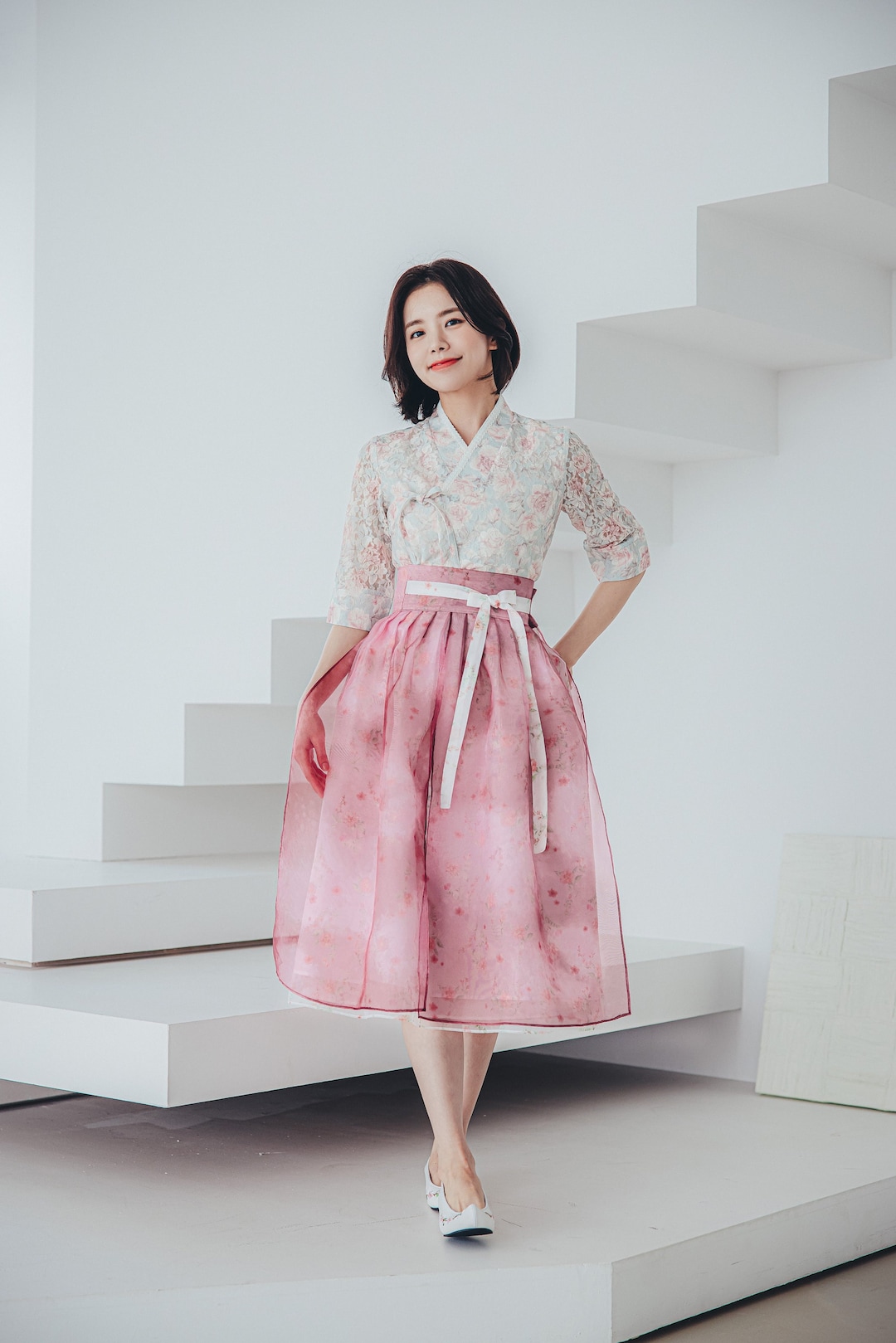 White Floral Modern Hanbok Handmade Hanbok Jeogori Wedding, Picnic