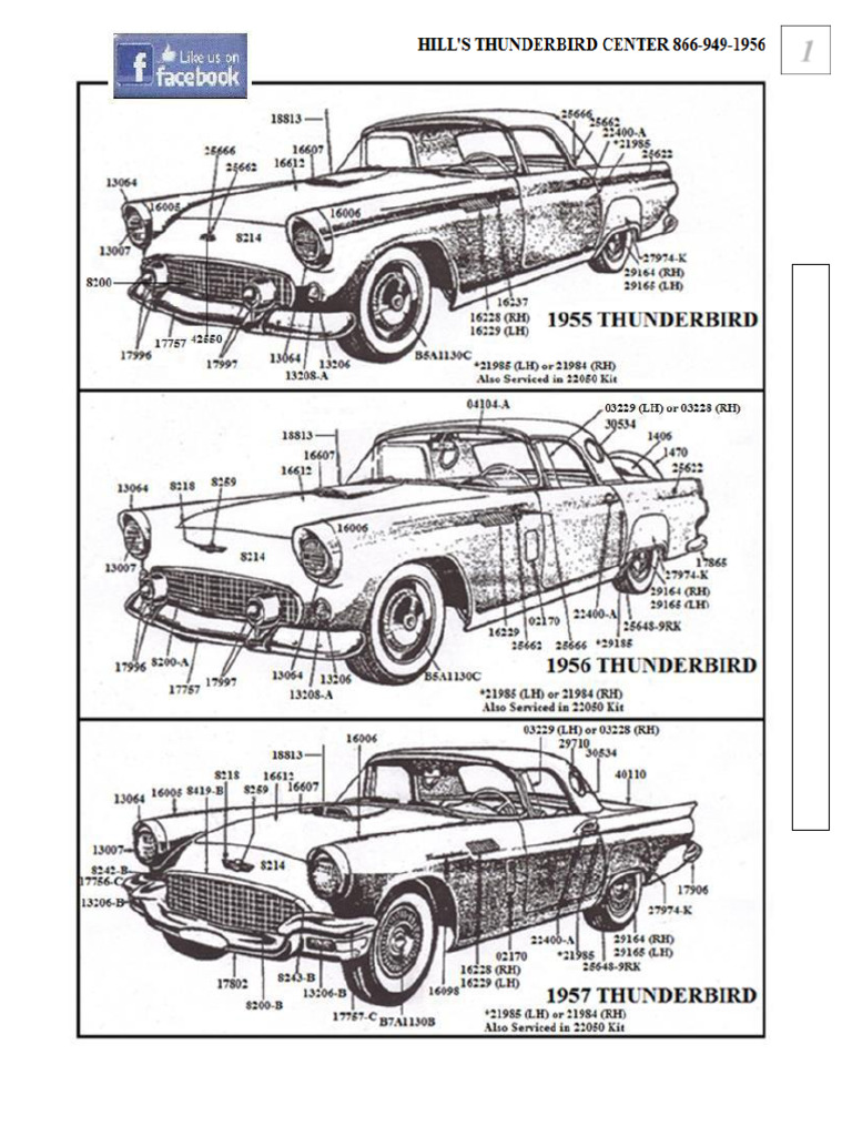 Thunderbird Parts Vintage Catalog with diagrams '55 thru '57 parts