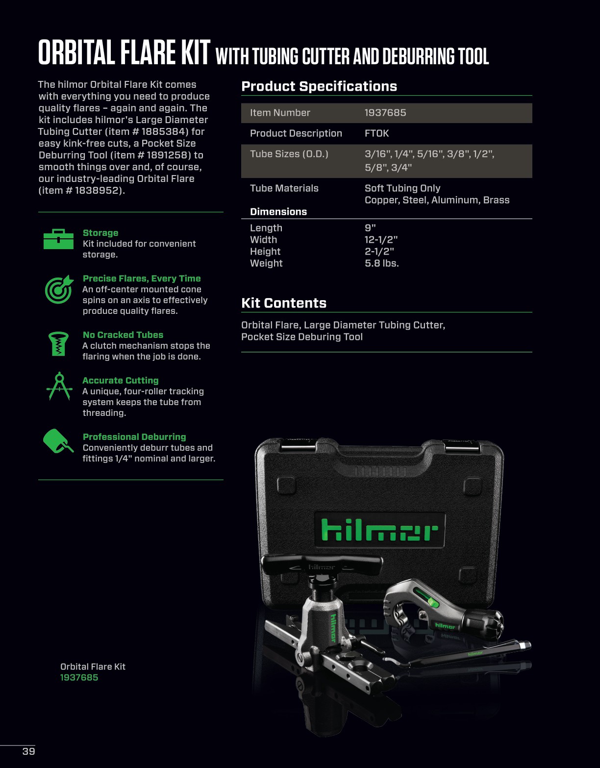 Hilmor FTOK Orbital Flare Kit with 1/8" to 1 3/8" Tubing Cutter and