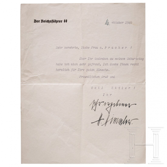 Heinrich Himmler signierter Dankesbrief an Ina von Pracher, 1940