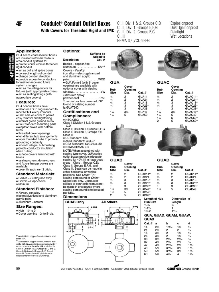 Cooper Crouse Hinds Condulet Conduit Outlet Boxes GUA Catalog Page